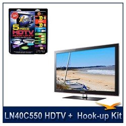 Samsung LN40C550 40" 1080p LCD HDTV, 1080p Resolution, 6ms Response Time, 70,000:1 Dynamic Contrast Ratio, High-performance Hook-Up & Maintenance Kit: 2 High Performance HDMI Cables, 1 Component Video Cable, 1 Optical Audio Cable, 1 TV Cleaning Kit
